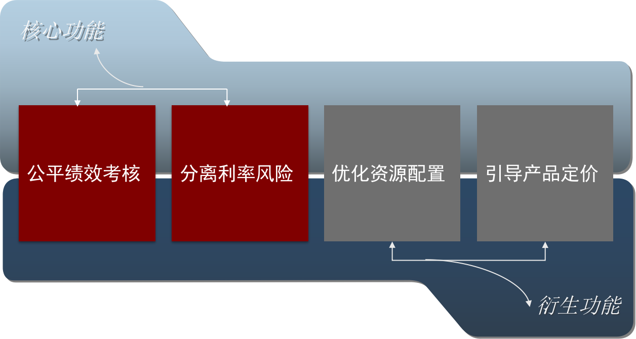 首先,30 万元的利润是存款和贷款共同作用的结果,从财务会计的角度无法核算各自的利润贡献。存款和贷款分别由不同的业务经营单元完成,商业银行从公平绩效考核的角度出发,必须核算清楚各自的利润贡献,因此,商业银行此时需要有一个管理工具来切割利润。