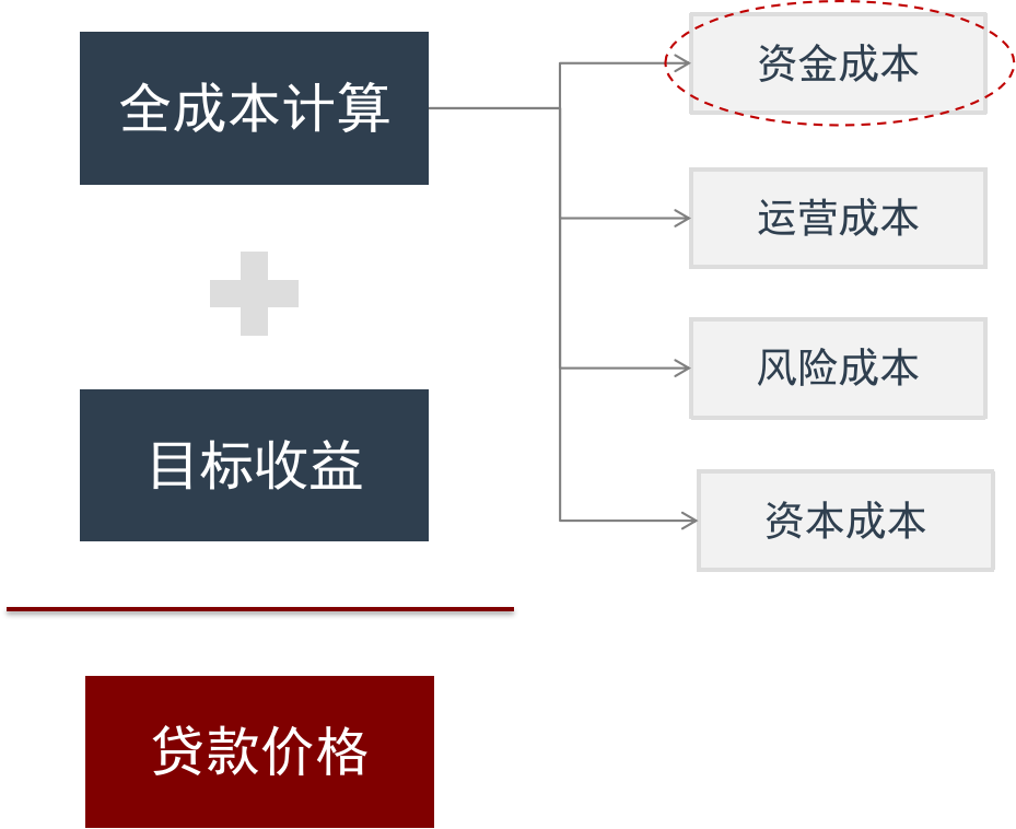 贷款成本 = ∑[贷款金额 * (资金成本 + 运营成本 + 风险成本 + 资本成本)]