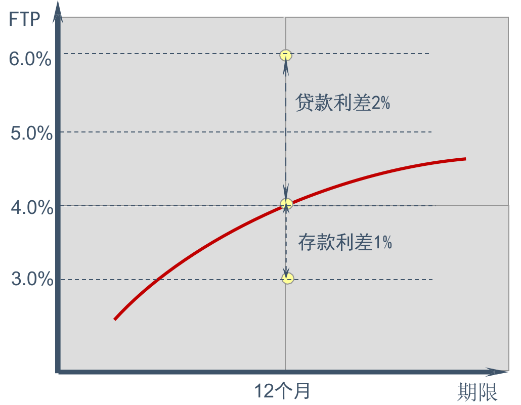 业务发生当天,系统会根据当天的 FTP 收益率曲线匹配一个相应期限的 FTP 价格,这个价格在业务存续期保持不变,FTP 利差被锁定,支行(业务经营单位)无需承担由于资金市场价格波动所带来的风险。